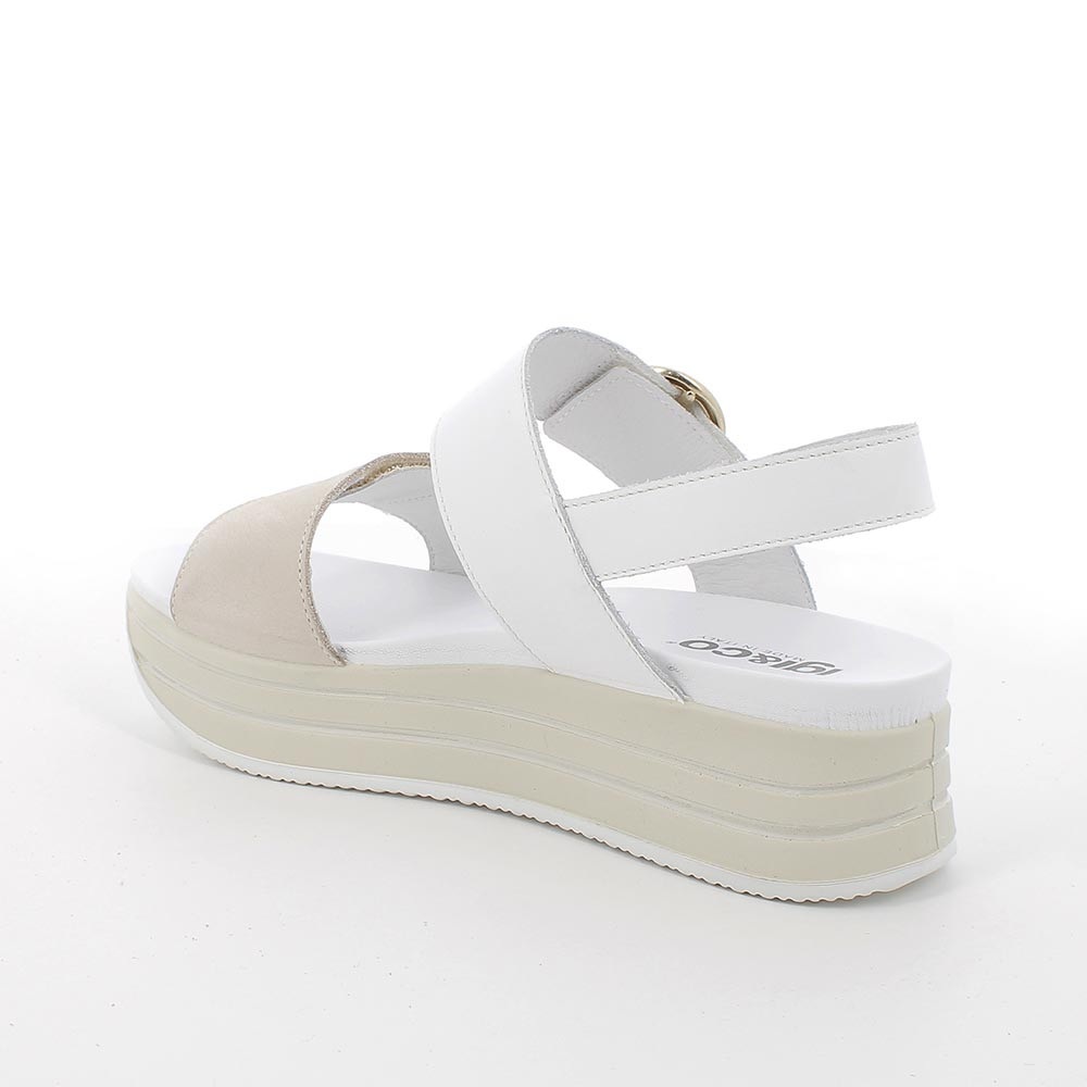 SANDALE MIT KEILABSATZ AUS LEDER FUER FRAUEN BEIGE-WEISS