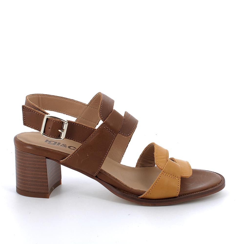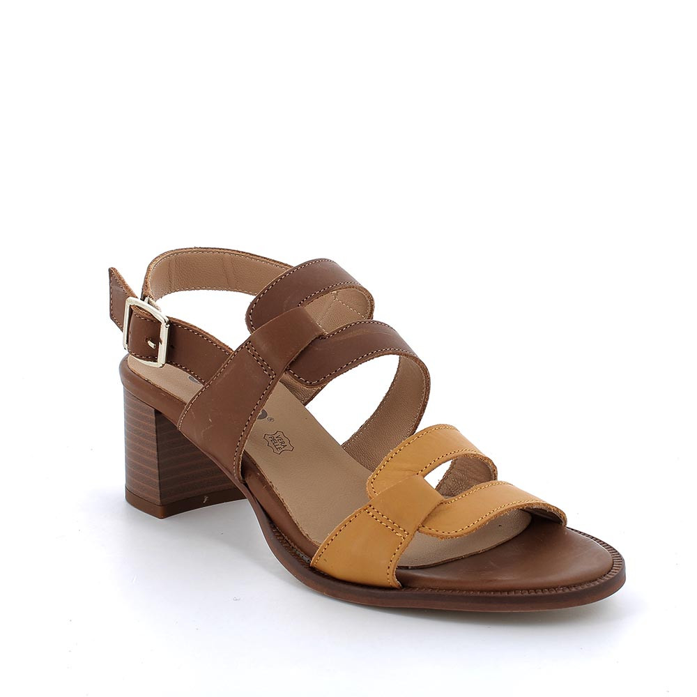 SANDALE MIT ABSATZ IN LEDER FUER FRAUEN HELLBRAUN-OCKER