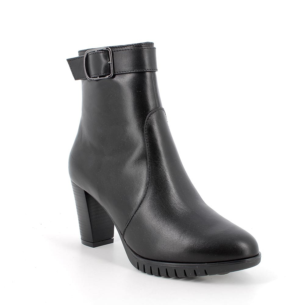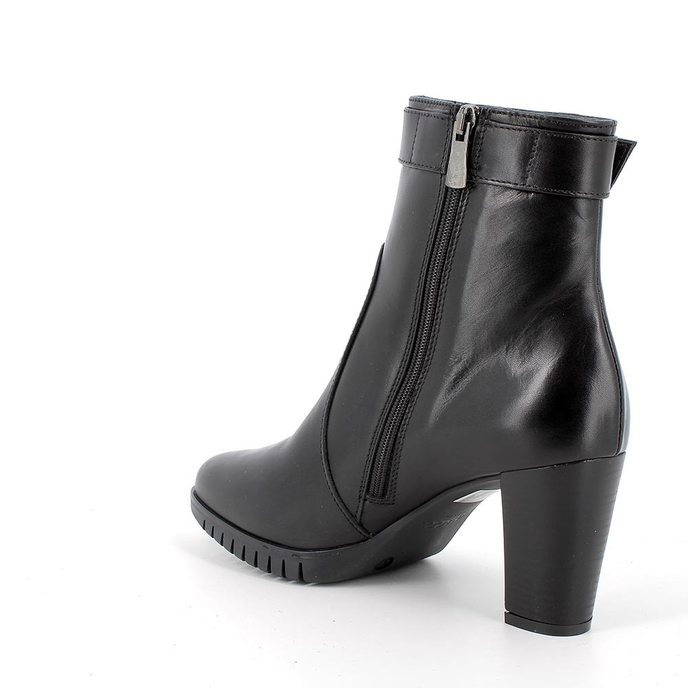 Damen-Stiefeletten aus Leder mit Absatz, schwarz