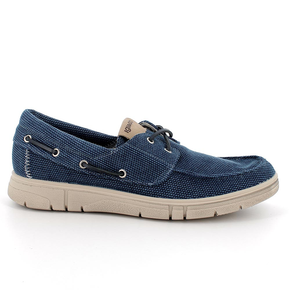 Bootschuhe mit Senkeln aus Baumwollstoff außen und innen. Sie eignen sich besonders für freigeistige Männer, die sich gerne informell kleiden und ihre Schuhe auch barfuß tragen. Die Sohle ist bequem und breit, um jegliches Einschnüren zu vermeiden. Das Profil ist so konzipiert, dass es Grip und Flexibilität fördert. Die anatomische Innensohle ist herausnehmbar und mit Leder überzogen, um Atmungsaktivität und Hygiene zu gewährleisten.