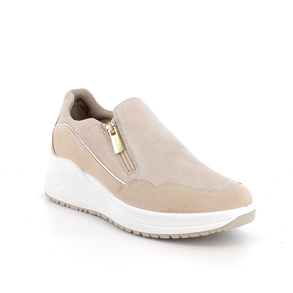 SLIP ON MIT KEIL FUER FRAUEN BEIGE UND PLATIN MIT ZIP