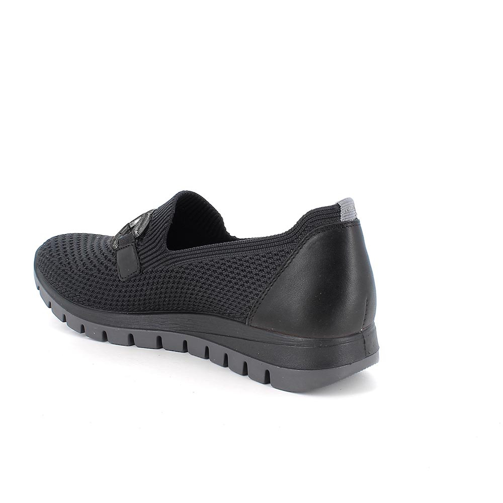 Loafer mit edlem Obermaterial aus weichem Strickstoff. Der Schuh verfügt über ein dekoratives Accessoire auf der Oberseite, das seinen klassischen und schicken Stil unterstreicht. Die leicht erhöhte Sohle garantiert eine optimale Dämpfung und guten Halt, wodurch sich der Schuh ideal für den Alltag eignet. Das Slip-On-Design ermöglicht eine schnelle und einfache Passform, perfekt für alle, die Praktikabilität suchen, ohne auf Stil zu verzichten.