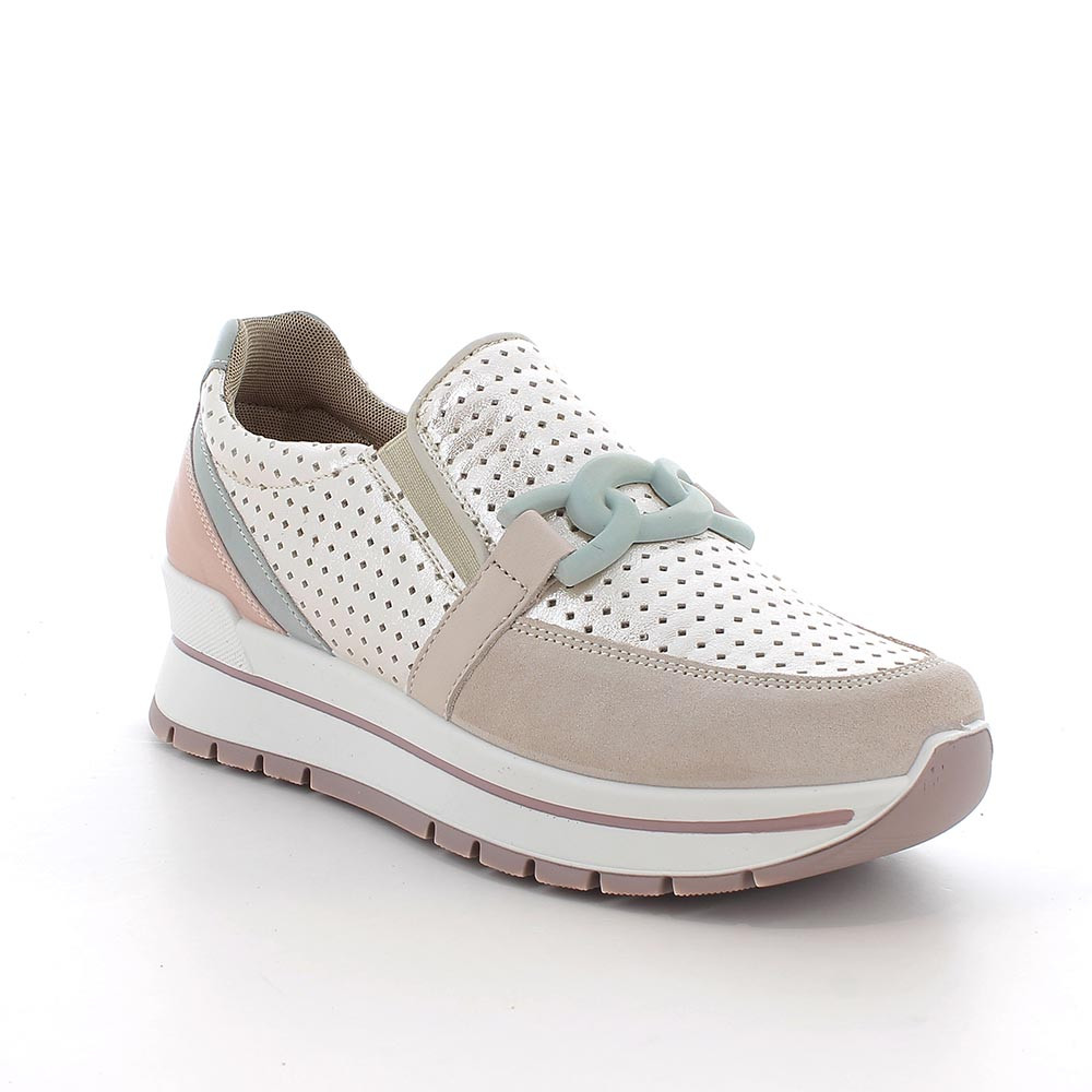 SLIP ON MIT KEIL FUER FRAUEN BEIGE UND GRUEN MIT ELASTIK