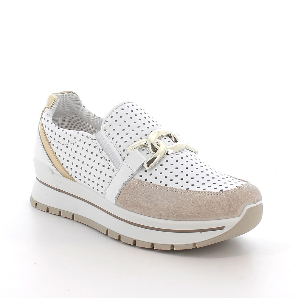 SLIP ON MIT KEIL FUER FRAUEN WEISS UND BEIGE MIT ELASTIK