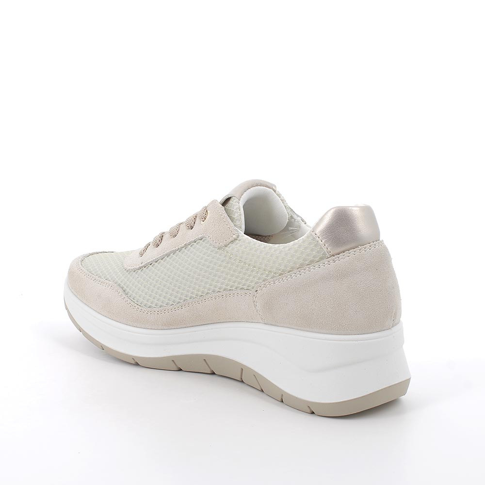 DAME SCHUH MIT KEILABSATZ WEISS UND BEIGE MIT SENKEL