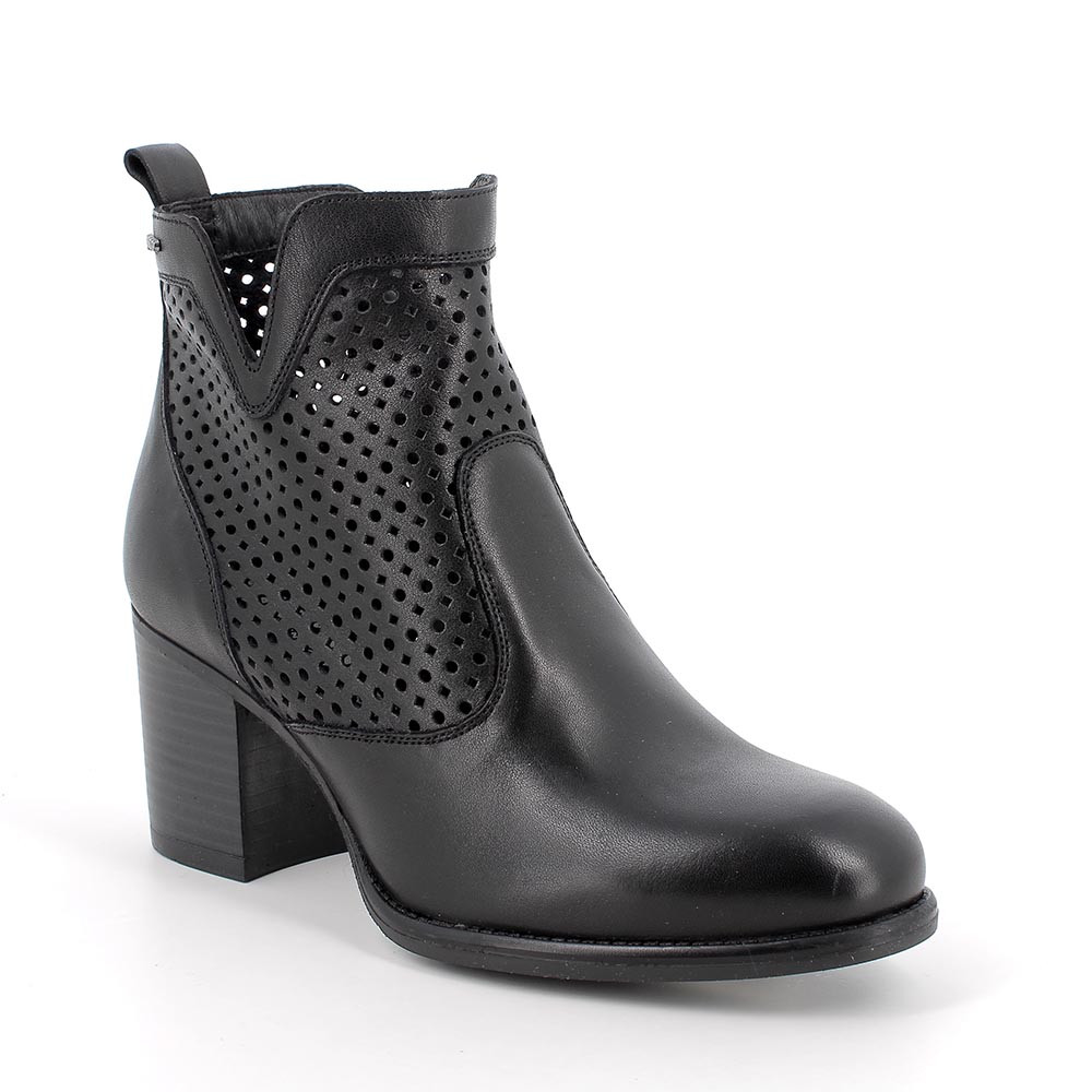 Damenstiefeletten für den Sommer aus perforiertem Leder, das ein originelles und modernes ästhetisches Element darstellt und auch die Belüftung verbessert. Sie eignen sich sowohl für Casual- als auch für Boho-Chic-Looks und lassen sich problemlos mit Skinny Jeans, leichten Röcken oder Jeansshorts kombinieren. Mit einem moderaten Absatz und einer weichen Passform garantieren sie auch an langen Tagen Komfort.