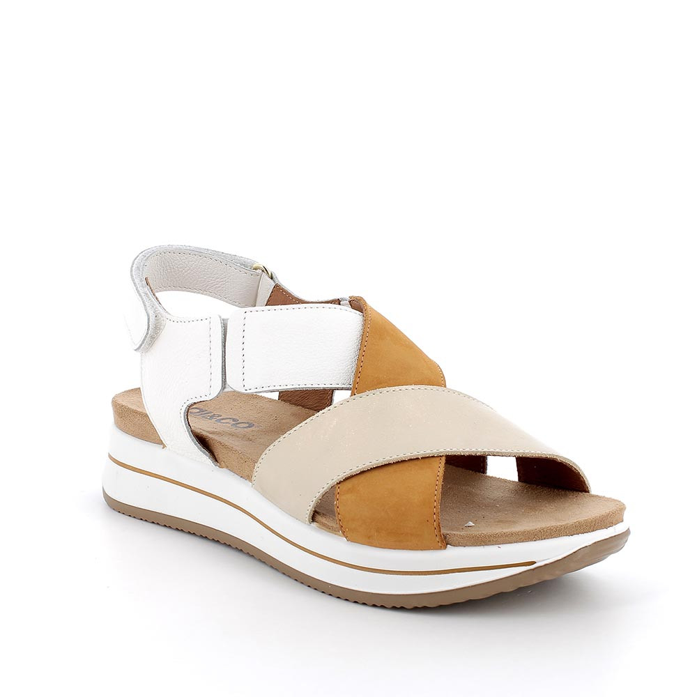 DAME SANDALE MIT KEILABSATZ GELB UND WEISS MIT VELCRO