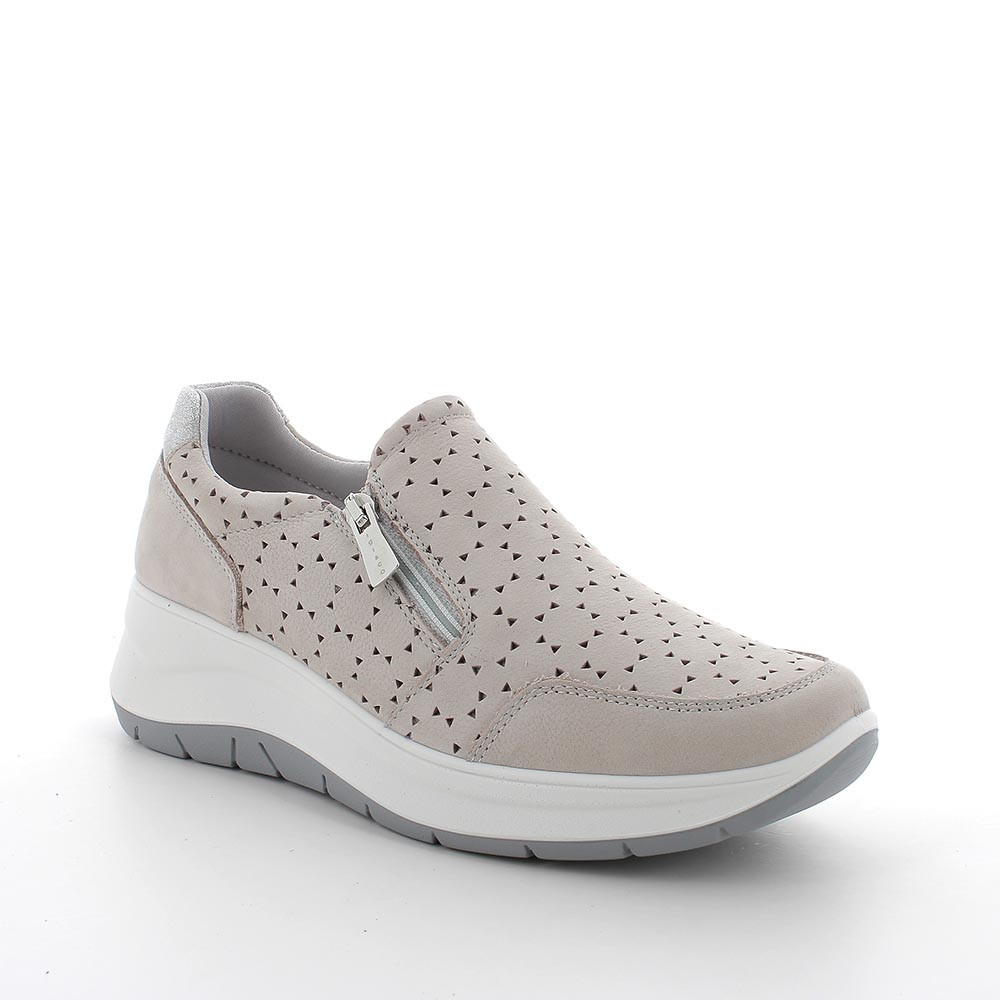DAME SLIP ON MIT KEIL BEIGE UND GRAU MIT ZIP