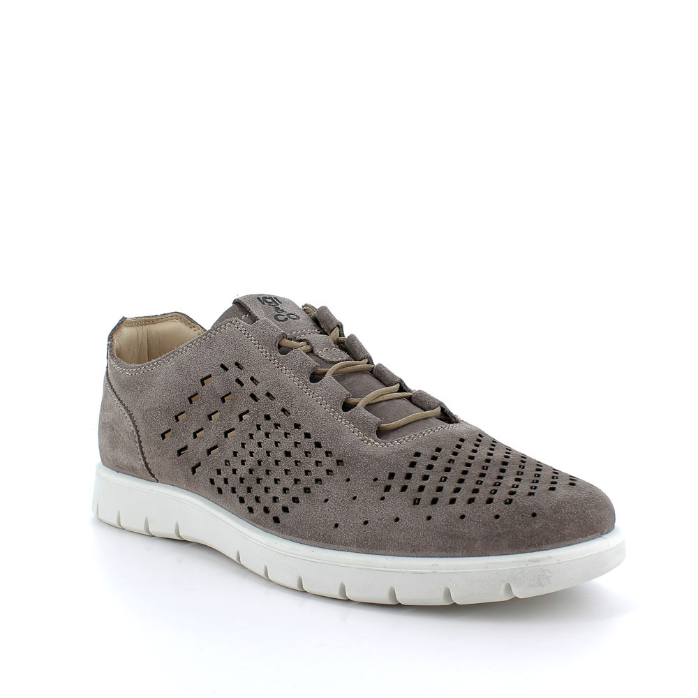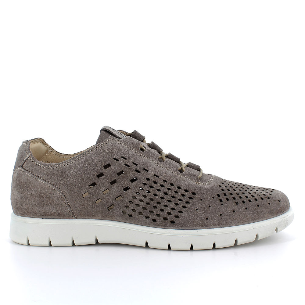 A BASIC SNEAKER WITH PERFORATED UPPER AND LINING, PERFECT TO WEAR DURING THE HOTTEST DAYS AND TO MATCH WITH RELAXED AND INFORMAL OUTFITS. THE SPECIFIC STRUCTURE OF THE SOLE ENSURES FLEXIBILITY AND ADHERENCE TO THE GROUND. THE REMOVABLE ANATOMIC LEATHER INSOLE GUARANTEES FRESHNESS AND BREATHABILITY.