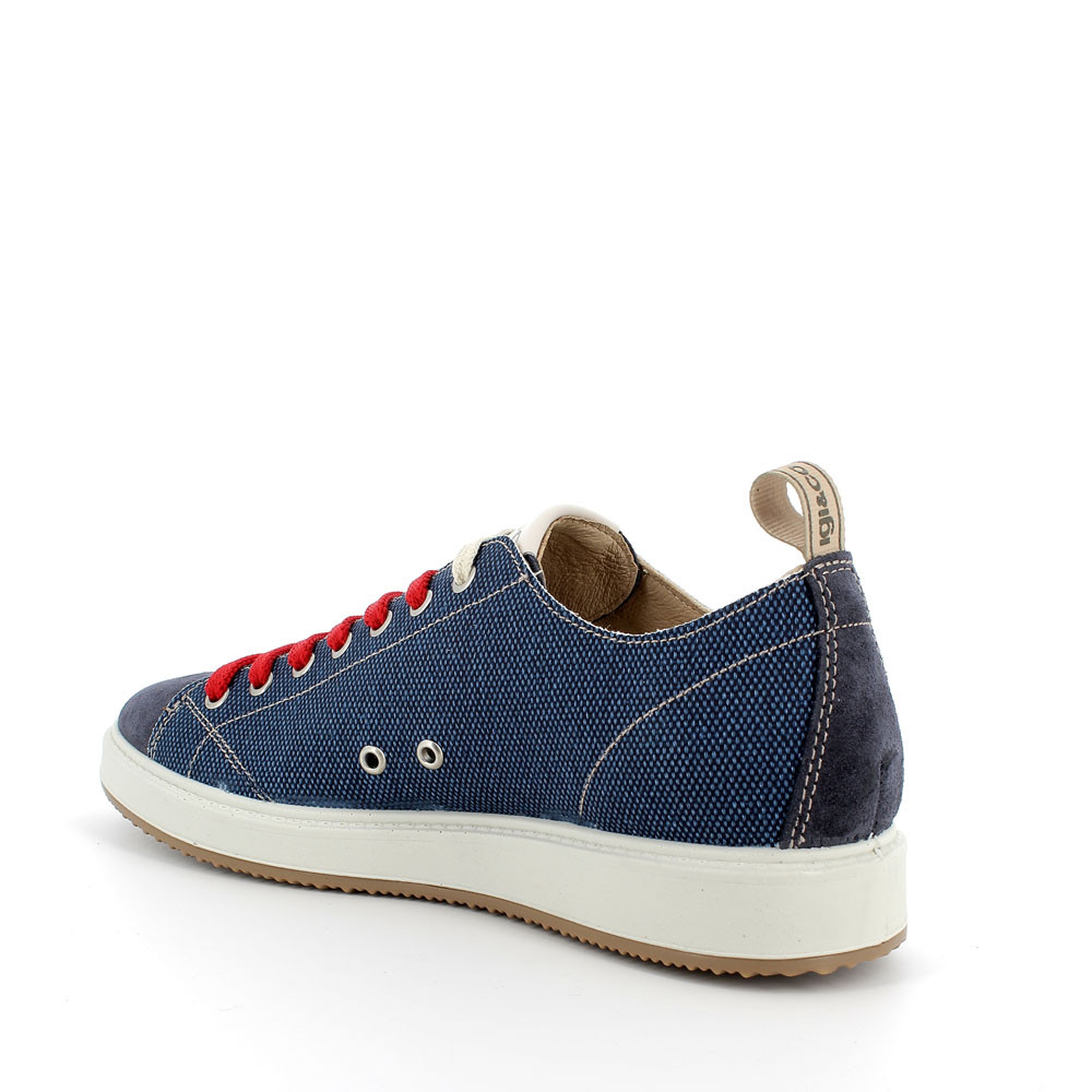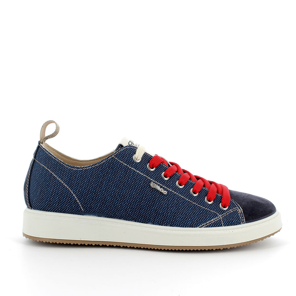 A BASIC AND VERSATILE TENNIS-INSPIRED SNEAKER MADE OF TEXTILE, WITH THE TOE TIP IN SUEDE LEATHER FOR MORE PROTECTION. THE TWO-TONE LACES MAKE IT FASHION WHILE THE FLAT SOLE, LIGHT AND FLEXIBLE, MAKES IT MORE SUMMER LOOKING. THE BACK EYELET FACILITATES THE FIT.