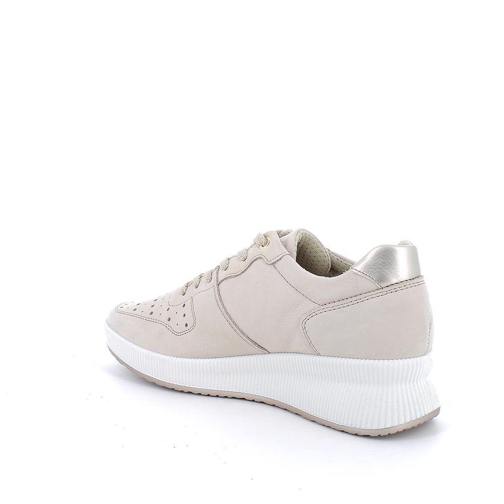 Cream woman's leather wedge sneaker