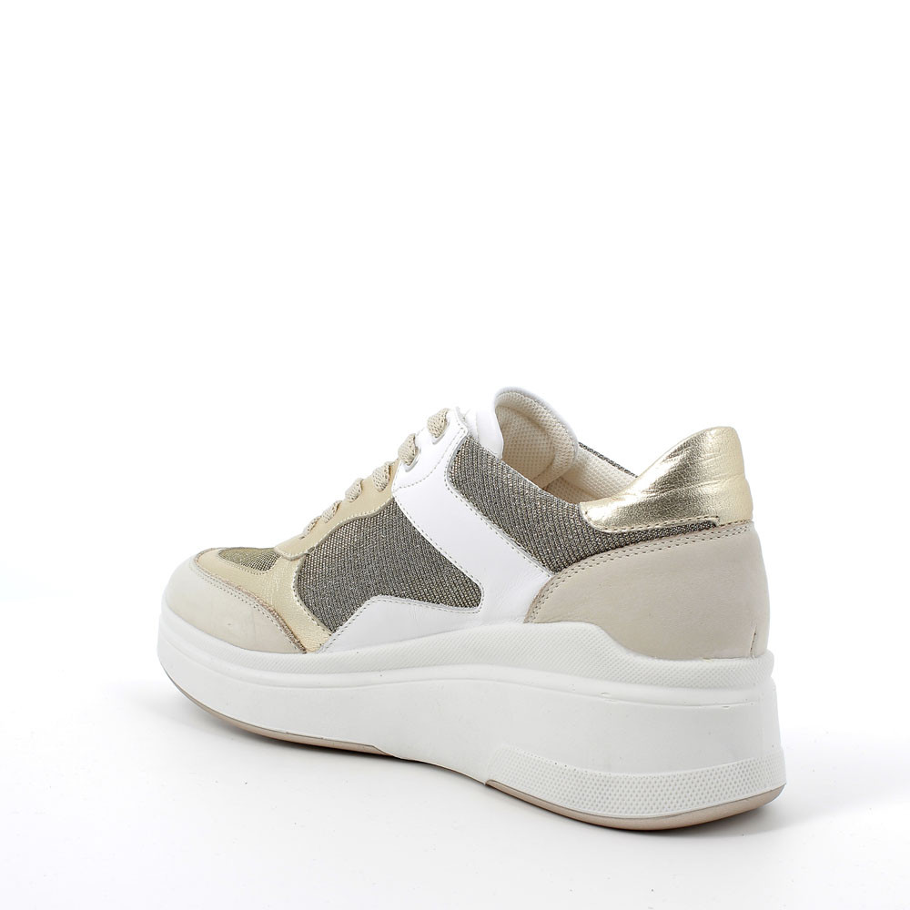 Cream-platinum woman's wedge sneaker