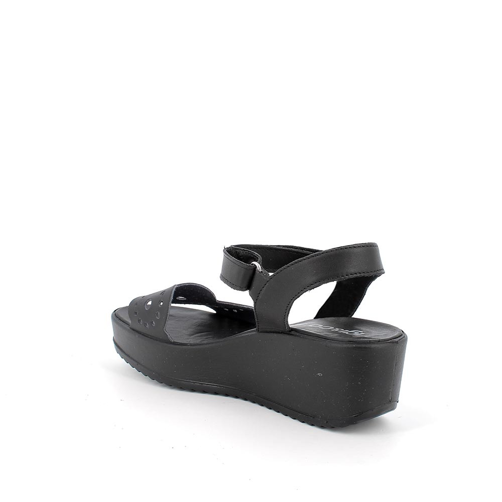 A CLASSIC LEATHER SANDAL WITH THE ADJUSTABLE BAND AT THE ANKLE AND WITH A PERFORATING-EFFECT FRONT BAND TO ENSURE FEMININITY AND STYLE. IT CAN BE WORN EVERY DAY BECAUSE THE LIGHT WEDGE SOLE MAKES IT REALLY COMFORTABLE.