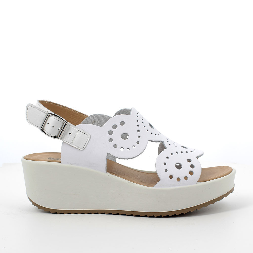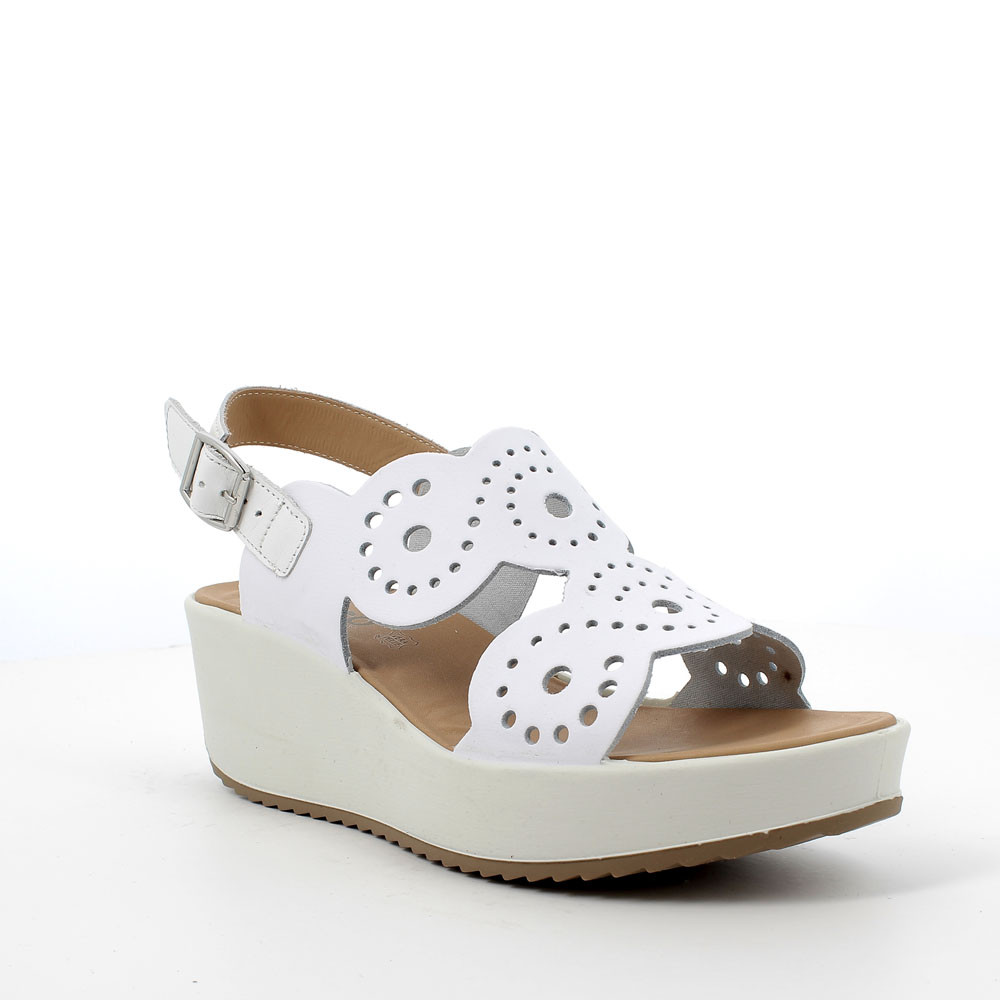 White woman's leather wedge sandal