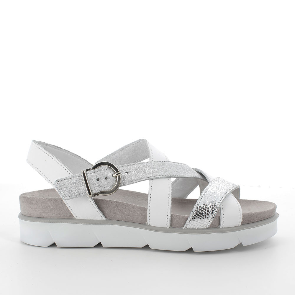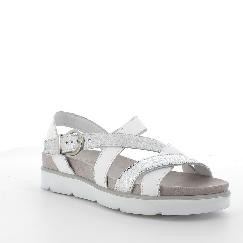 A FLAT SANDAL WITH CROSSED BANDS THAT NATURALLY AND COMFORTABLY WRAP THE FEET. THE LEATHERS MIX IS DELICATE AND ELEGANT, PERFECT TO LIVE EACH DAY WITH STYLE. IT CAN BE QUICKLY ADJUSTED THANKS TO THE BUCKLE AT THE ANKLE; THE INSOLE IS SHAPED TO WRAP THE FEET GIVING THEM AN EXTRAORDINARY COMFORT FEELING.