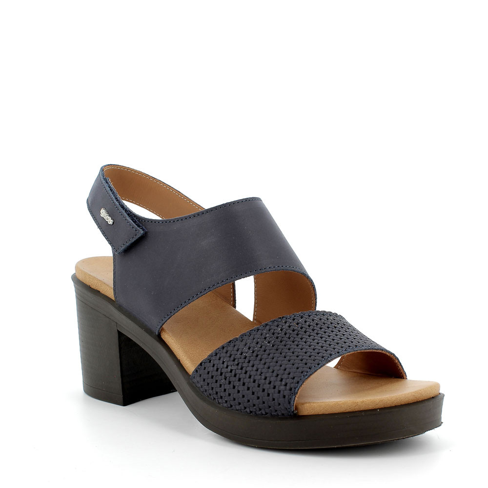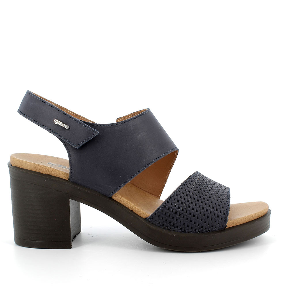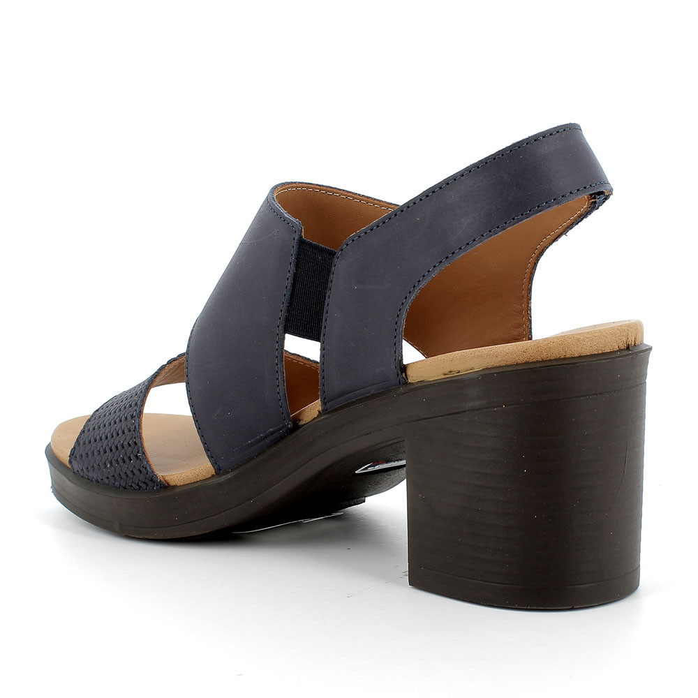 Blue woman's heel leather sandal
