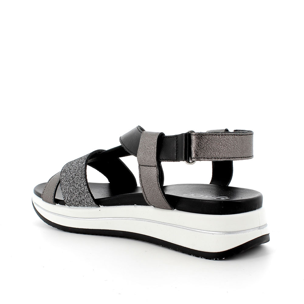A SPORTY BUT FEMININE AND ELEGANT SANDAL, MADE OF HIGH-QUALITY MATERIALS. THE CROSSOVER UPPER WRAPS AND HOLDS THE FOOT, AND THE BAND ON THE BACK ALLOWS AN EASY REGULATION. THANKS TO THE LIGHT SOLE, IT IS SUITABLE FOR AN ALL DAY WEARING.
