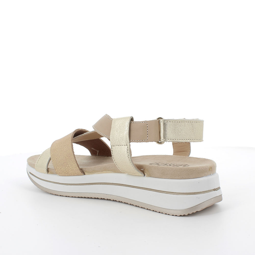 Beige-platinum woman's leather sandal