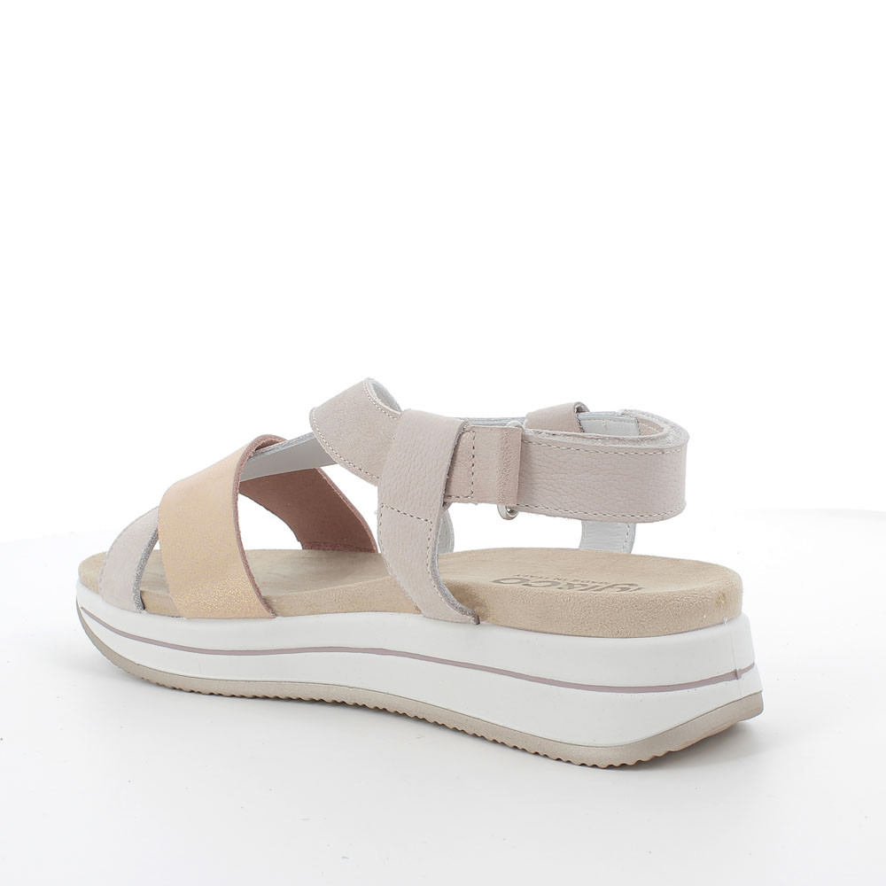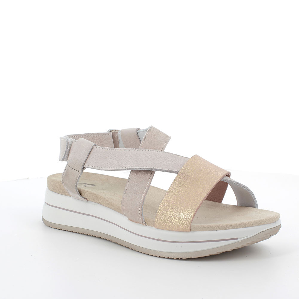 A SPORTY BUT FEMININE AND ELEGANT SANDAL, MADE OF HIGH-QUALITY MATERIALS. THE CROSSOVER UPPER WRAPS AND HOLDS THE FOOT, AND THE BAND ON THE BACK ALLOWS AN EASY REGULATION. THANKS TO THE LIGHT SOLE, IT IS SUITABLE FOR AN ALL DAY WEARING.