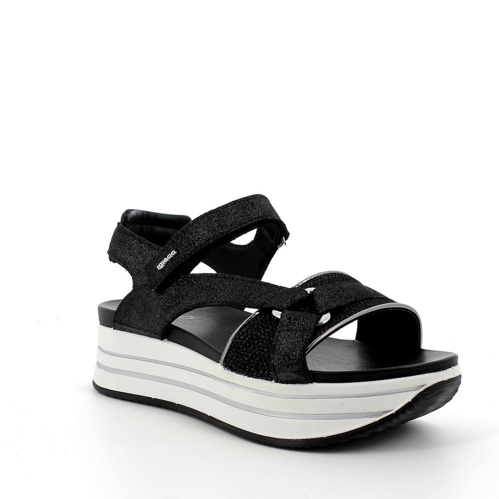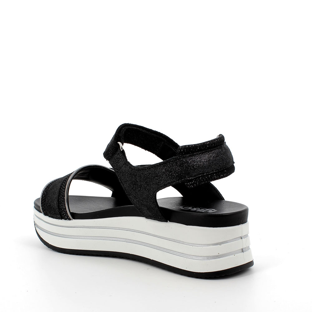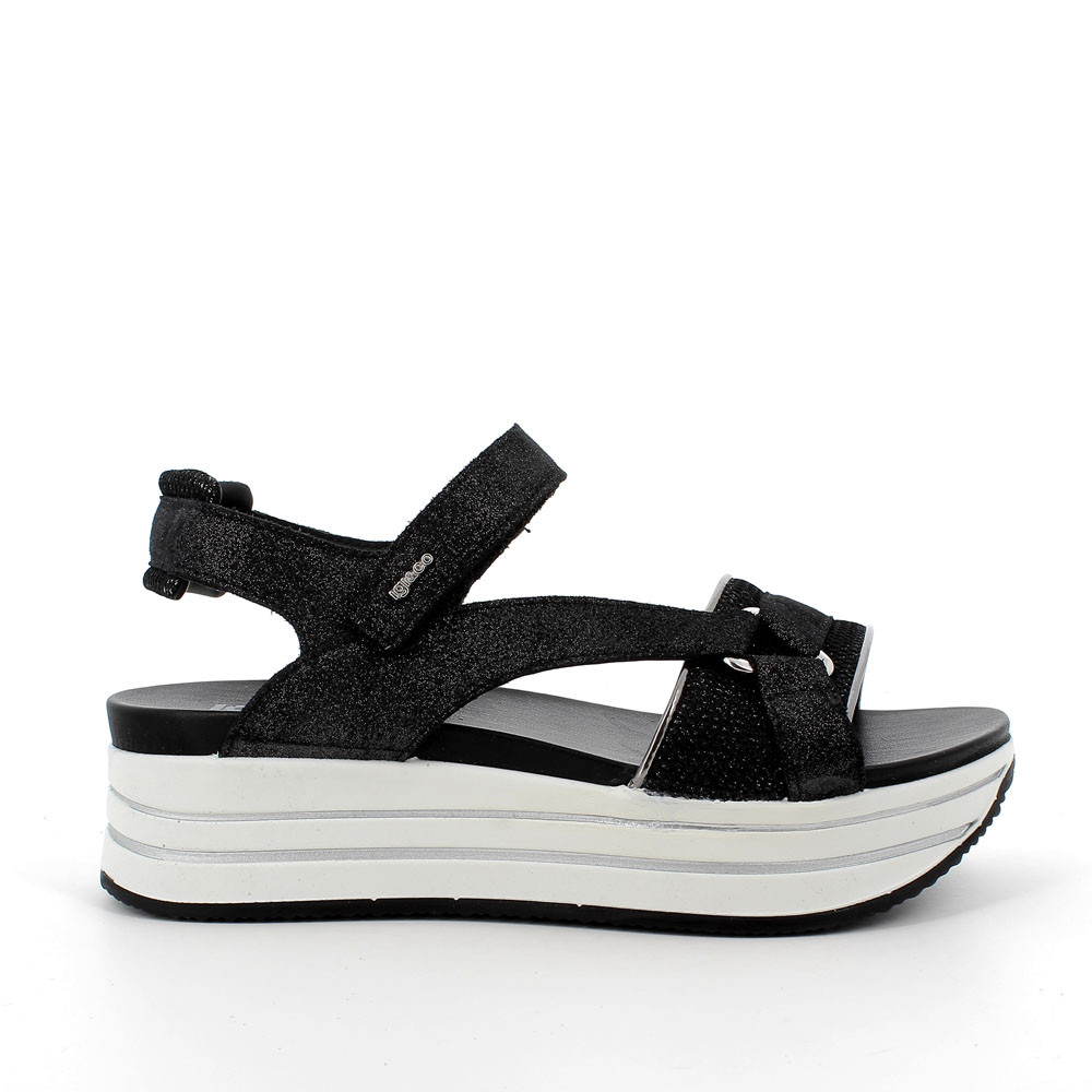 A SPORT, ECLECTIC AND MODERN SANDAL. IT HAS A VERY COMFORTABLE FIT, SUITABLE FOR AN ALL DAY WEARING, AND IT IS EASY TO ADJUST THANKS TO THE VELCRO AT THE ANKLE. THE WEDGE SOLE IS EXTREMELY LIGHT AND OFFERS GREAT SUPPORT, PROTECTING THE FOOT FROM THE IMPACTS WITH THE GROUND.
