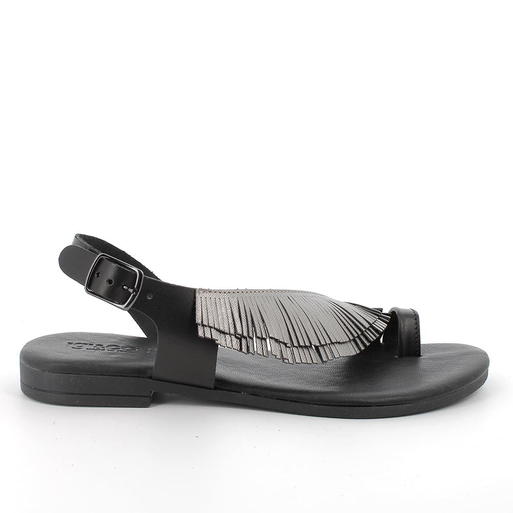 AN ELEGANT AND SUPER GLAMOUR LEATHER FLIP-FLOP SANDAL WITH DOUBLE FRINGES. IT CAN BE USED TO CREATE ORIGINAL EVERYDAY CITY OR VACATION OUTFITS, GRANTING GREAT COMFORT. THE SOLE, WITH A SMALL HEEL, IS LIGHT AND FLEXIBLE AND IT GOES ALONG WITH A MEMORY FOAM INSOLE THAT HELPS DISTRIBUTING THE BODY WEIGHT TO ENSURE AN IDEAL CUSHIONING.