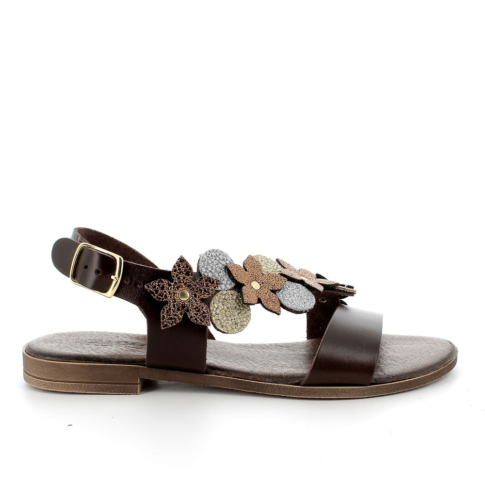 A VERY FEMININE, LEATHER, FLAT SANDAL WITH DIAGONAL BAND DECORATED WITH TONE-ON-TONE MULTIPLE APPLICATIONS. IT IS EASY TO WEAR AND TO ADJUST, THANKS TO THE BUCKLE AT THE ANKLE. THE LEATHER-EFFECT SOLE ENHANCES ITS CASUAL-CHIC LOOK. IT IS EXTREMELY SOFT AND FLEXIBLE, SUITABLE FOR ALL DAY WEARING THANKS TO THE MEMORY FOAM LEATHER INSOLE.