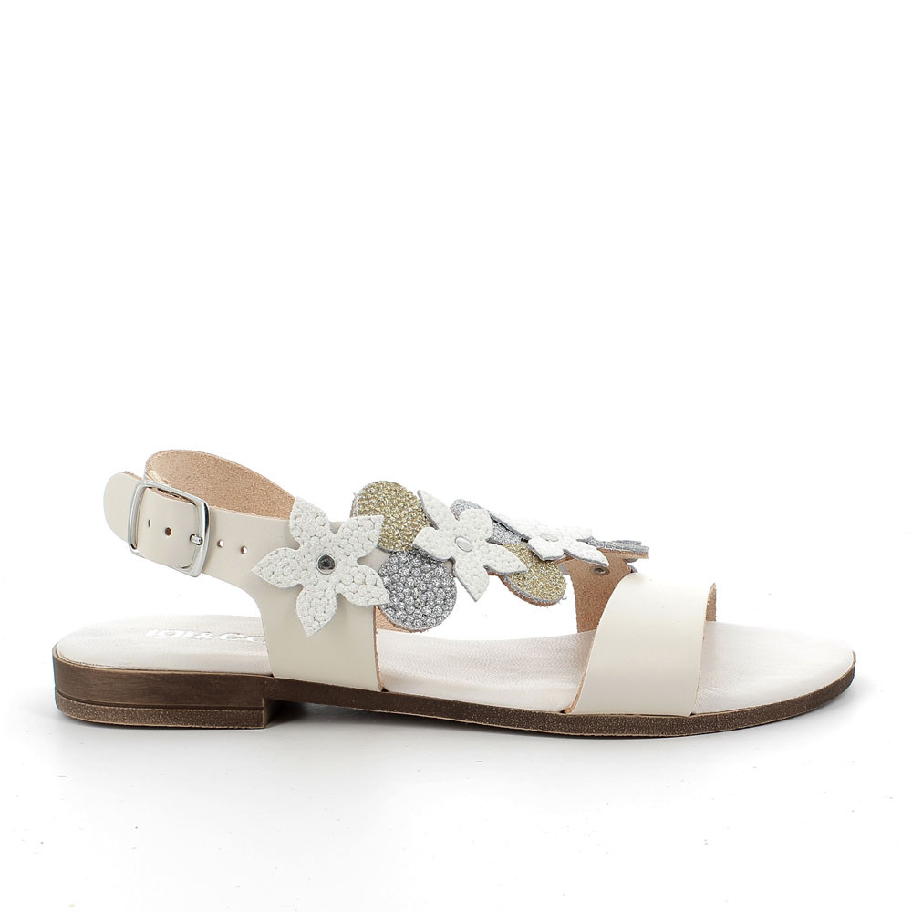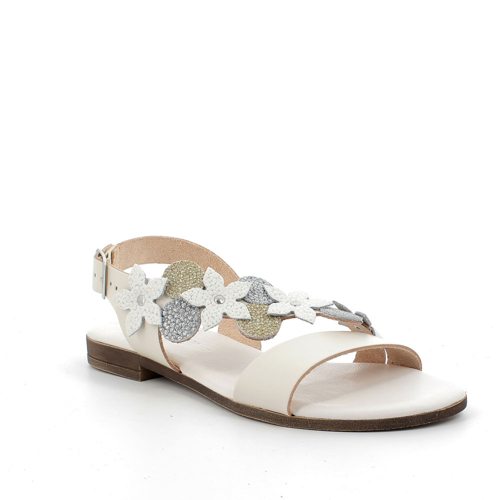 A VERY FEMININE, LEATHER, FLAT SANDAL WITH DIAGONAL BAND DECORATED WITH TONE-ON-TONE MULTIPLE APPLICATIONS. IT IS EASY TO WEAR AND TO ADJUST, THANKS TO THE BUCKLE AT THE ANKLE. THE LEATHER-EFFECT SOLE ENHANCES ITS CASUAL-CHIC LOOK. IT IS EXTREMELY SOFT AND FLEXIBLE, SUITABLE FOR ALL DAY WEARING THANKS TO THE MEMORY FOAM LEATHER INSOLE.