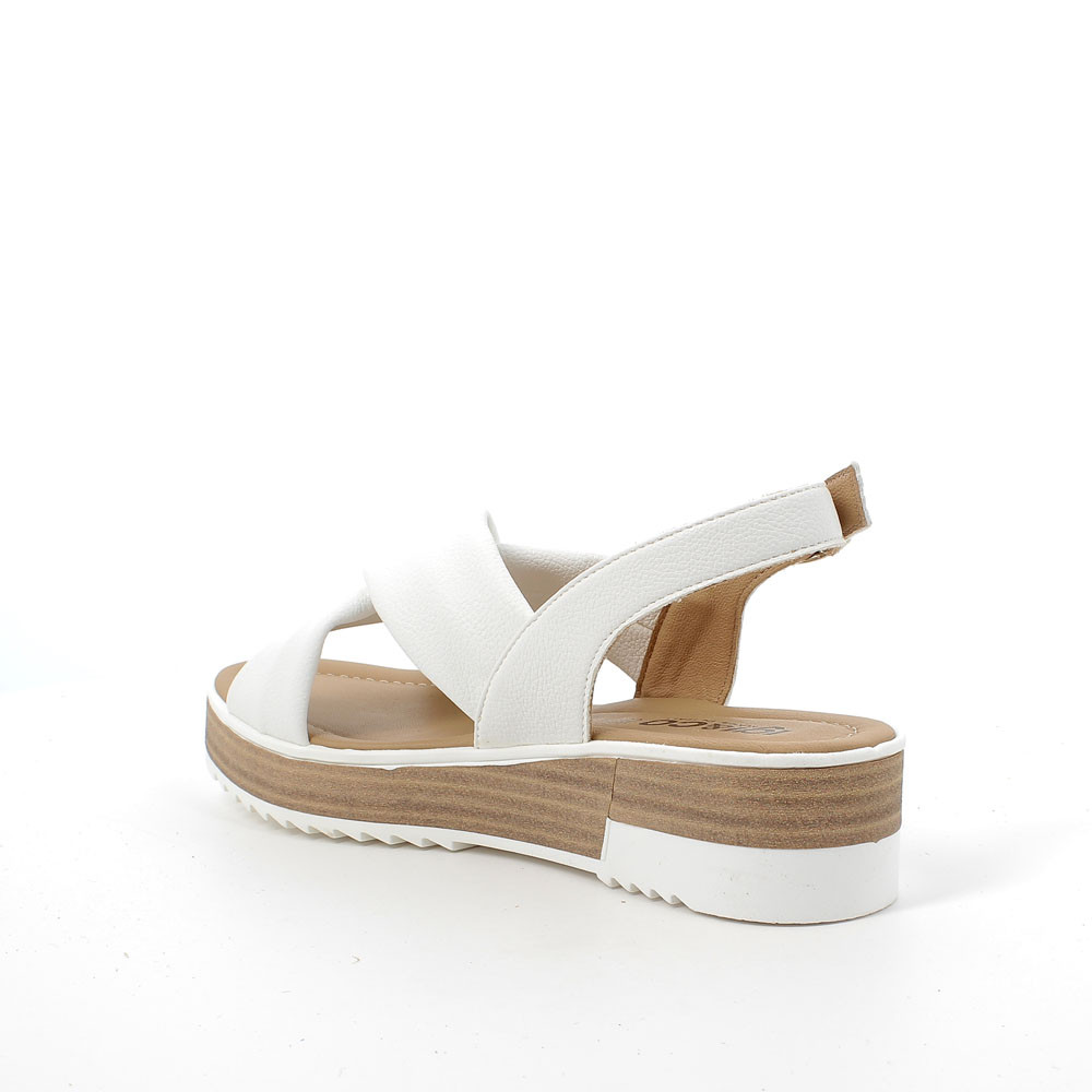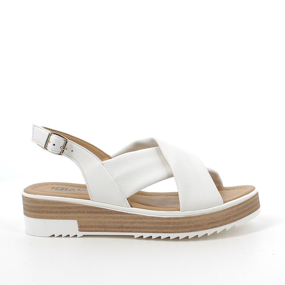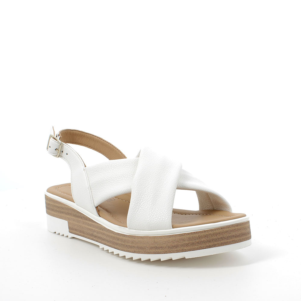 A SLINGBACK SANDAL WITH SOFT CROSSED FRONT BANDS. A VERY COMFORTABLE AND FEMININE STYLE, IT IS EASY TO ADJUST THANKS TO THE BUCKLE AT THE ANKLE. THE WOODEN-EFFECT SOLE GIVES IT A STRONG, SPORT-INSPIRED LOOK. THE LEATHER INSOLE OFFERS A SOFT SUPPORT AND BREATHABILITY.