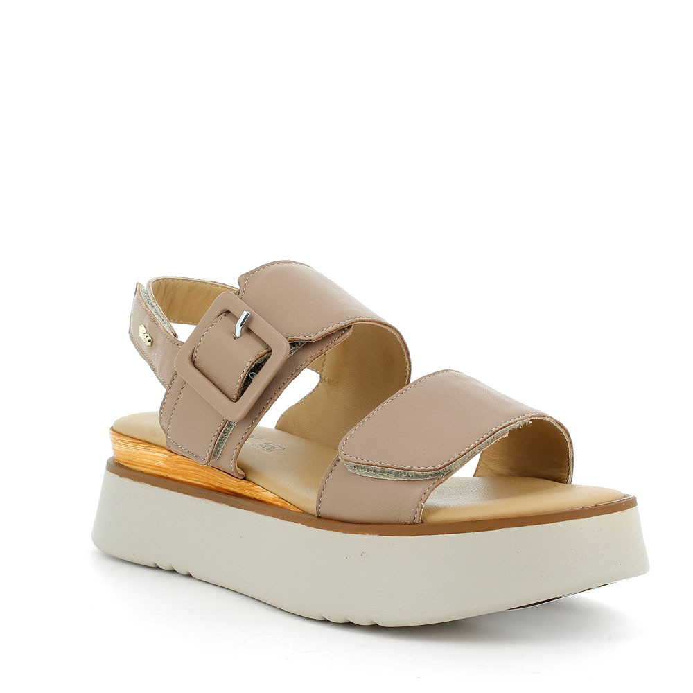 A BASIC LEATHER SANDAL SUITABLE FOR EVERY FOOT TYPE THANKS TO THE THREE VELCROS REGULATION. THE ELEGANT BUCKLE GIVES A STRONGER LOOK TO THIS REALLY COMFORTABLE STYLE. THE INSOLE HAS A SLIGHT PADDING AND PROVIDES THE GREATEST COMFORT AND BREATHABILITY. THE PLATFORM SOLE GUARANTEES SUPPORT AND PROTECTION FROM THE IRREGULARITIES OF THE GROUND.
