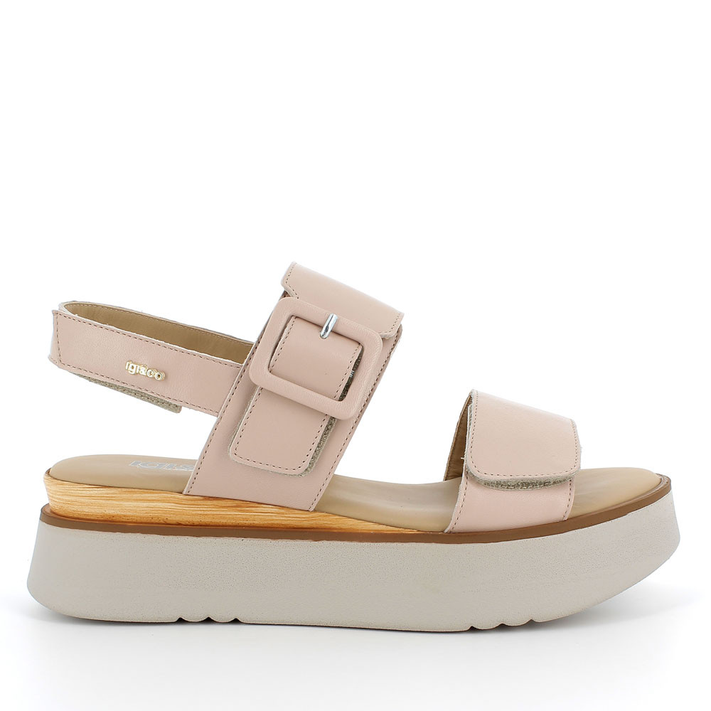 A BASIC LEATHER SANDAL SUITABLE FOR EVERY FOOT TYPE THANKS TO THE THREE VELCROS REGULATION. THE ELEGANT BUCKLE GIVES A STRONGER LOOK TO THIS REALLY COMFORTABLE STYLE. THE INSOLE HAS A SLIGHT PADDING AND PROVIDES THE GREATEST COMFORT AND BREATHABILITY. THE PLATFORM SOLE GUARANTEES SUPPORT AND PROTECTION FROM THE IRREGULARITIES OF THE GROUND.
