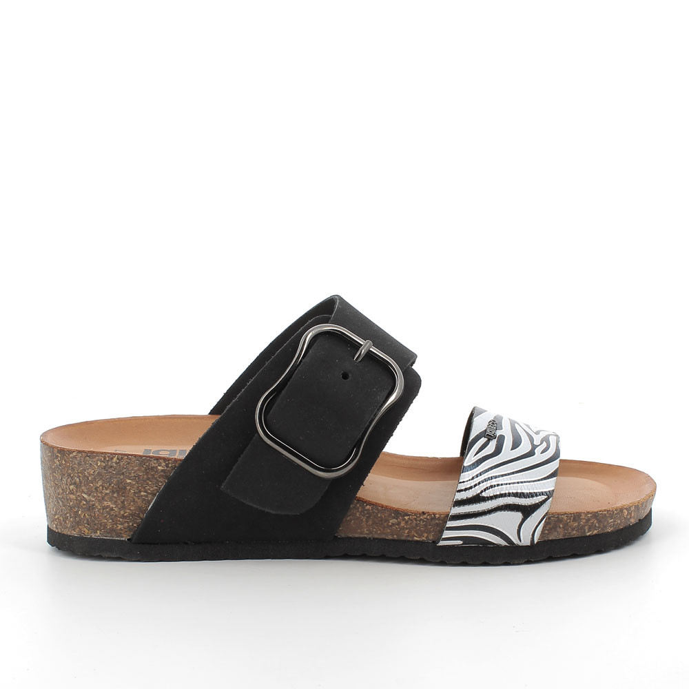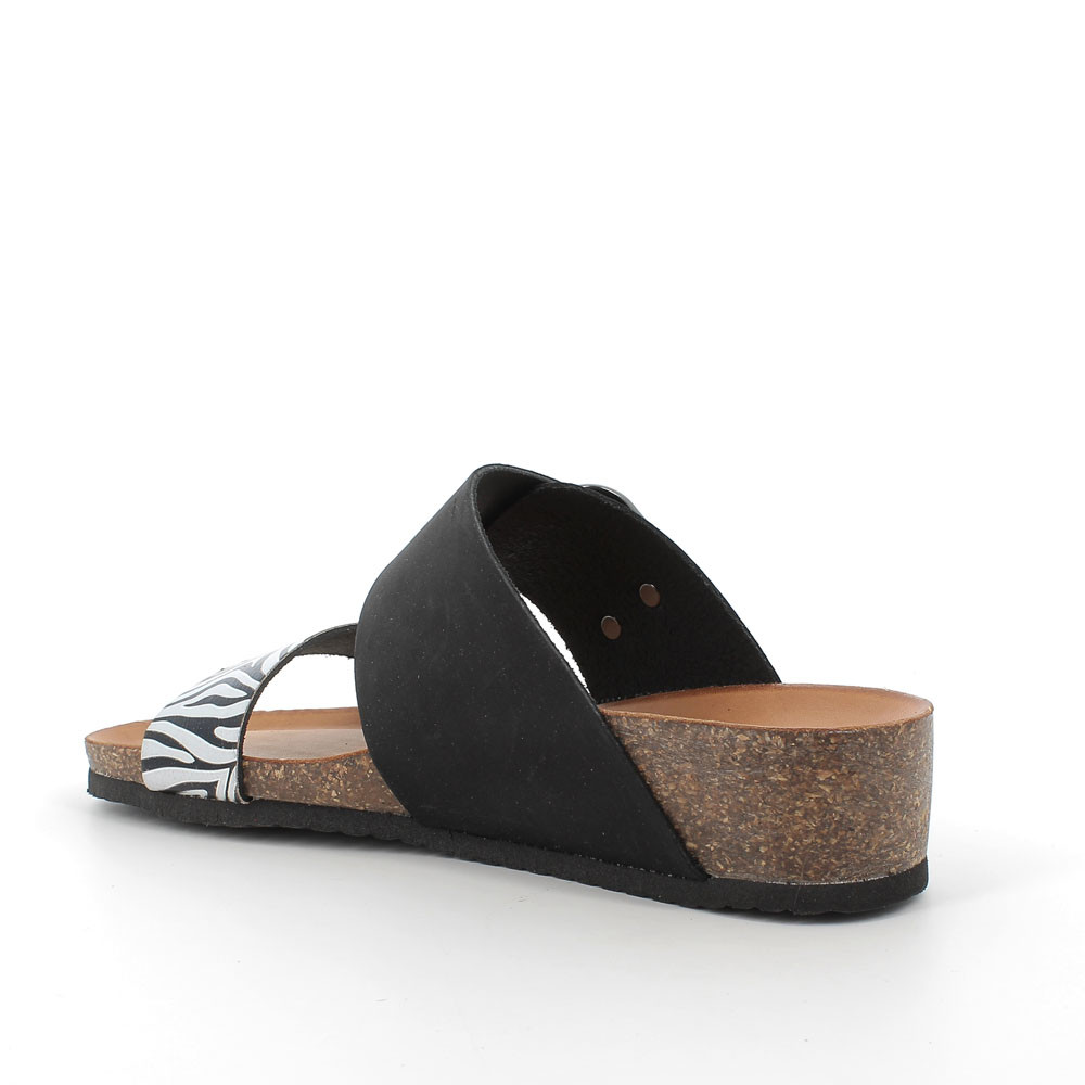 White-black woman's leather wedge sandal