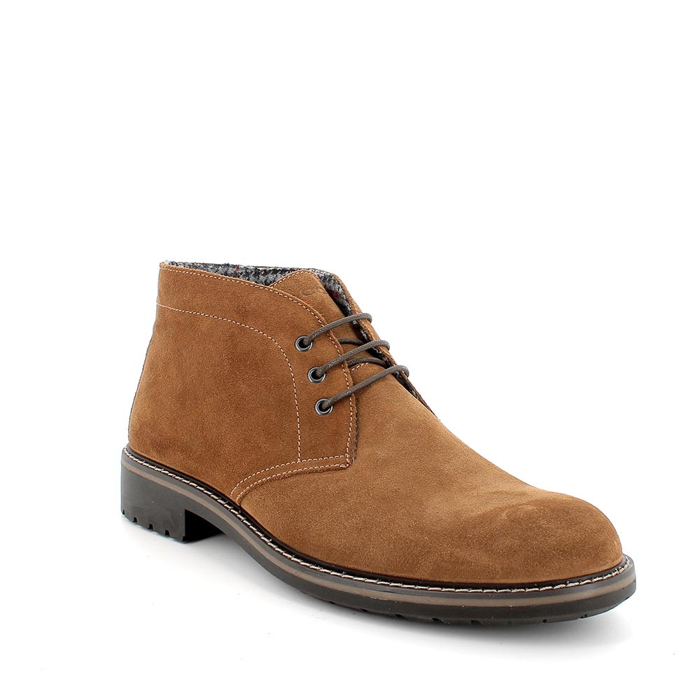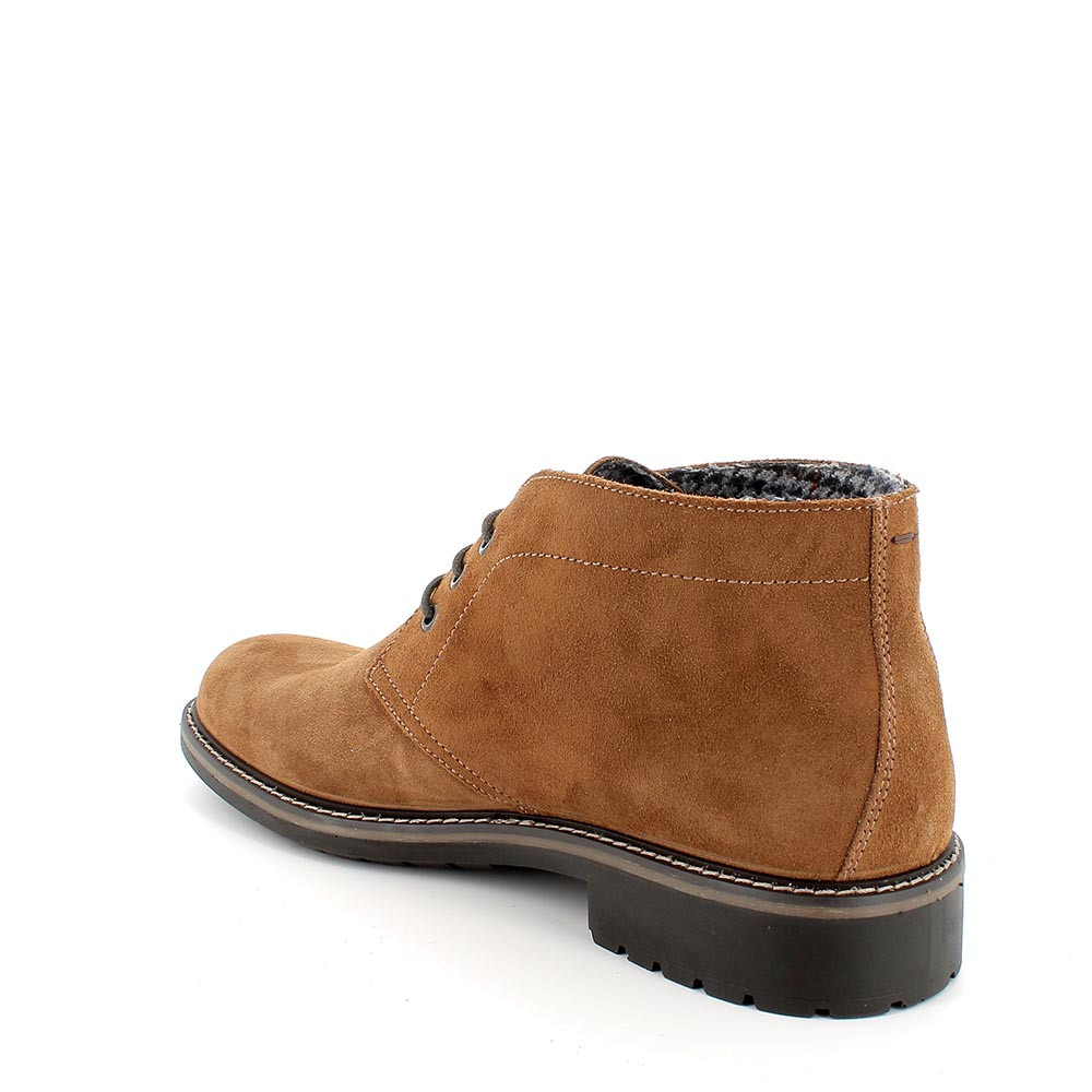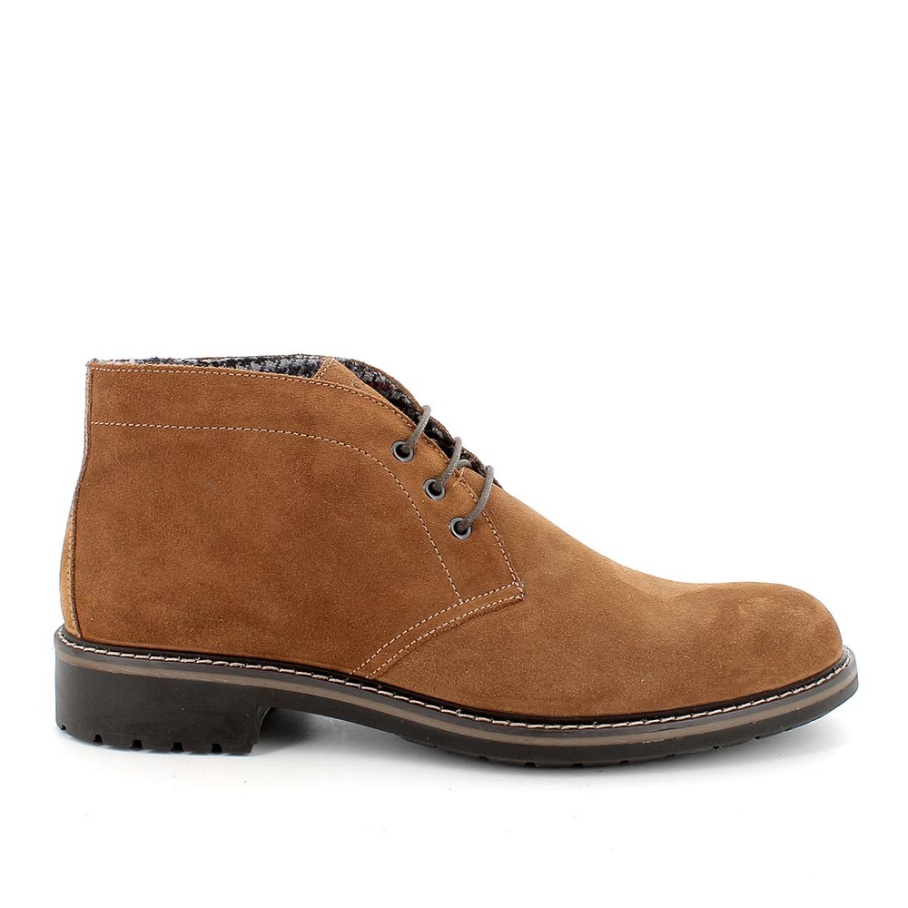 Men's lace-up ankle boots in suede lined with warm patterned fabric for a more informal look. These ankle boots are versatile shoes that adapt well to any daily activity and wrap around the foot without forcing it. The sole is extremely light and it will seem not to wear them at all. The anatomical insole is removable and covered in leather to ensure breathability and hygiene.