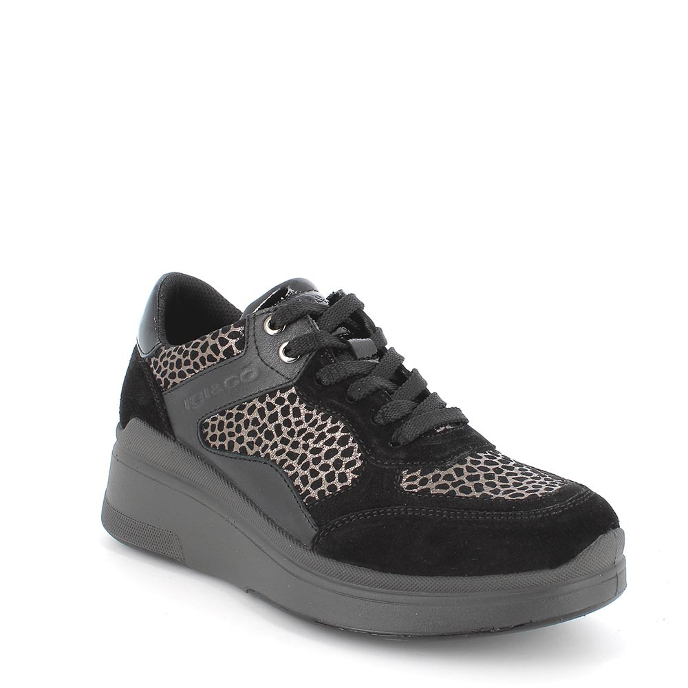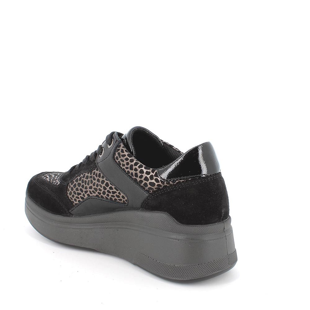 Black leather women's wedge sneakers