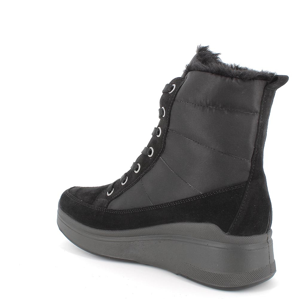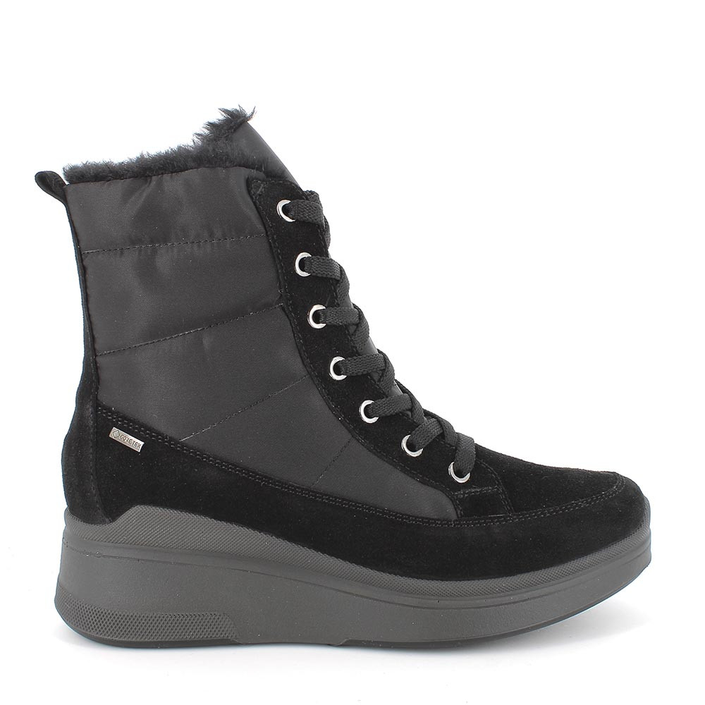 These ankle boots with women's laces are made of suede and slightly padded technical fabric. The Gore-Tex lining provides a dry and breathable environment even during the wettest days. The comfort of these shoes is also guaranteed by the wedge sole with front platform that rises slightly at the tip to accompany the step. The foot rests on a warm plantar that can be pulled out for greater hygiene.