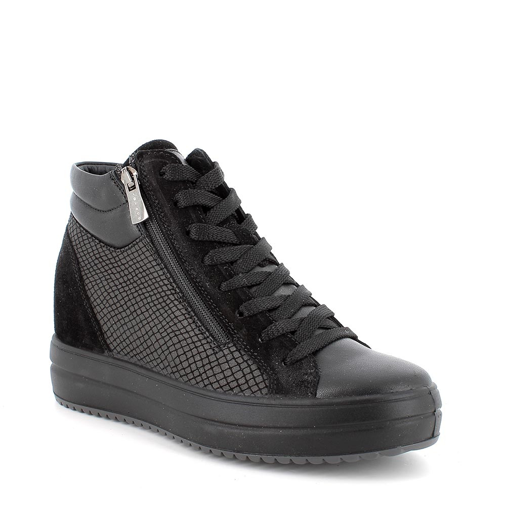 Women's sneakers with internal wedge in black leather