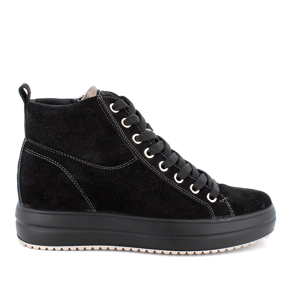 Suede sneakers are perfect for keeping your foot warm in winter. These shoes have a hidden wedge to slim the figure without sacrificing comfort. Laces can only be adjusted the first time thanks to the internal zip. The anatomical insole is removable and covered in leather to ensure breathability and hygiene.