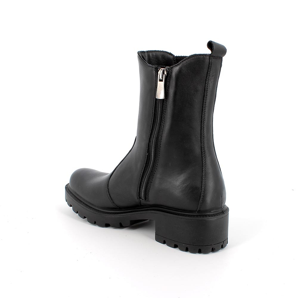 The high calf ankle boots with elastic bands are not always easy to wear, but above all to take off. These were made with a side zip in order to facilitate the task. The leather used for the upper and lining allows a natural breathability. The military-like sole offers traction and insulates from the cold. The heel is of the right height to ensure maximum comfort. The anatomical insole is removable and covered in leather to ensure breathability and hygiene.