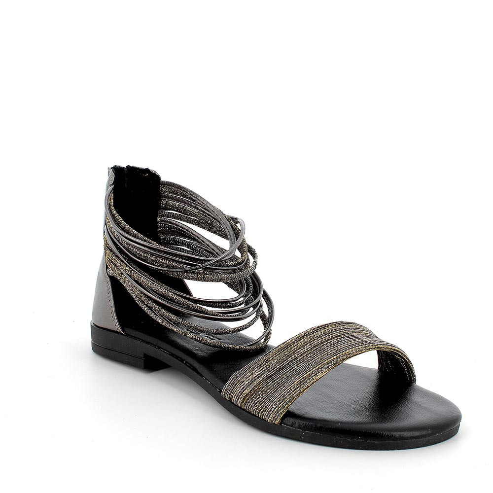 Sandal for lady black-gold-grey