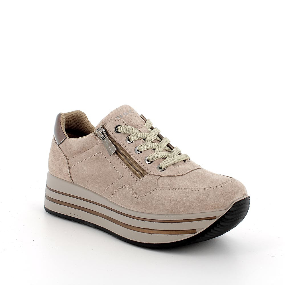 brown woman leather sneakers with wedge