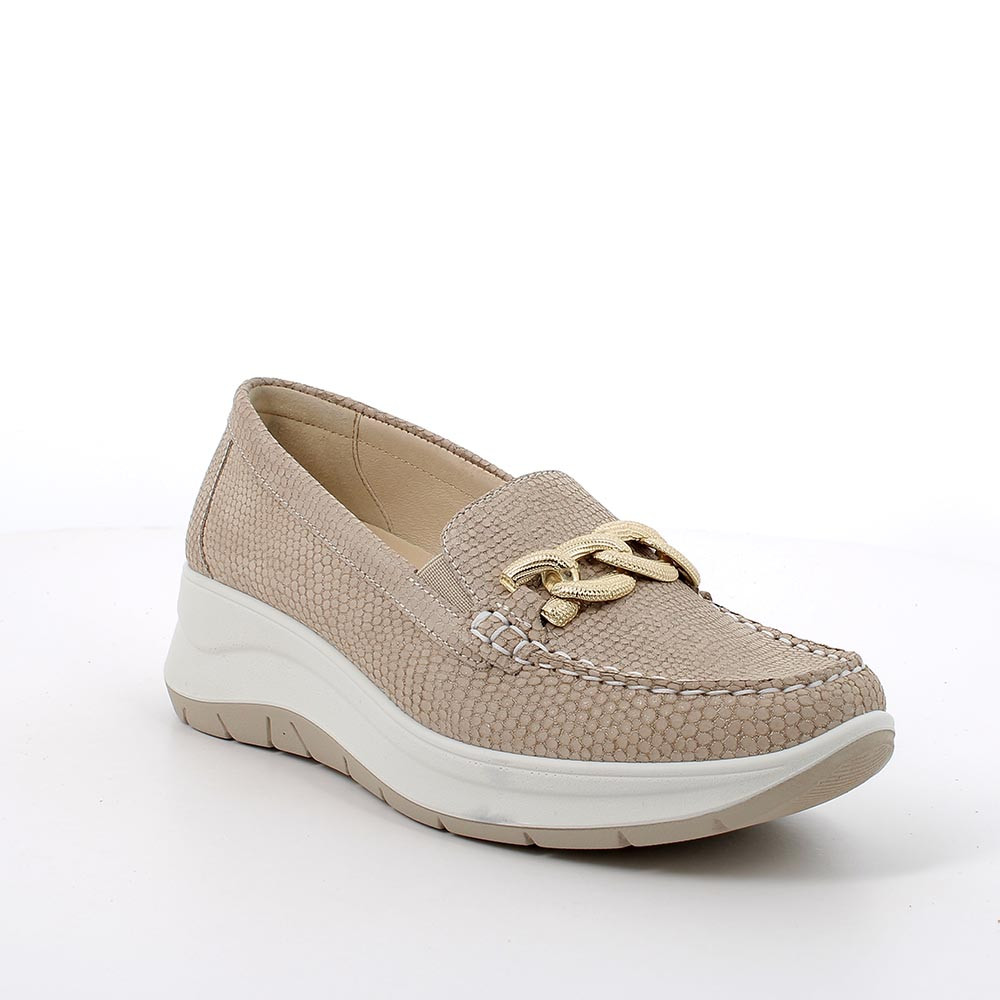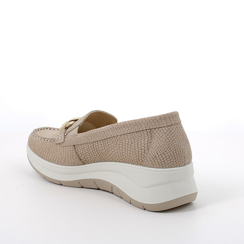 mocassin with wedge in leather woman beige iridescent