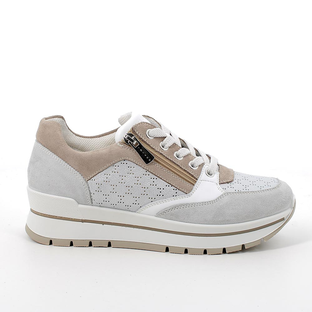 These leather sneakers are a must-have this season. The wedge sole, in addition to being very current, offers excellent thermal insulation. The grooves in the tread also ensure flexibility. The zip and elastic closure ensure a comfortable fit. The insole is covered in leather and ensures cushioning, protecting the foot from stress.