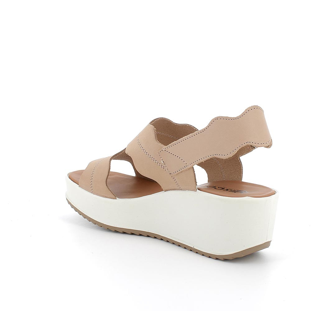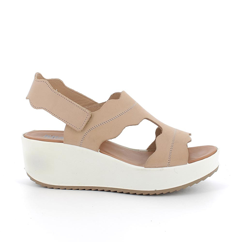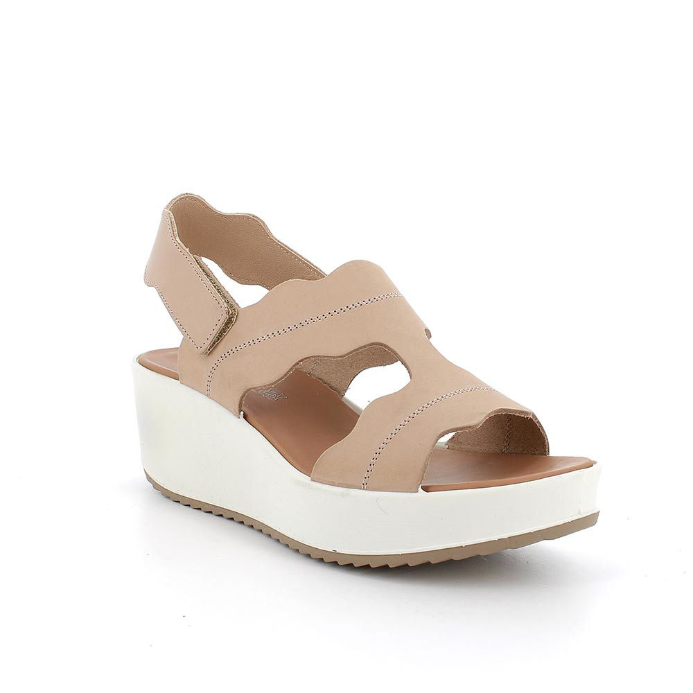 sandal with wedge in leather woman beige