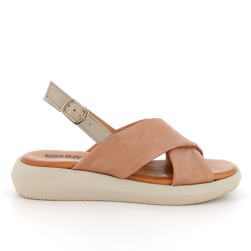 These women's cross-banded sandals are contemporary and sophisticated. This is demonstrated by the particular rounded design of the sole which follows the latest fashion trends. The lines are soft as the leather-covered memory foam insole