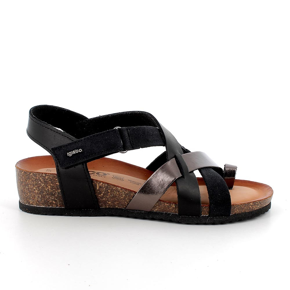 Sandal with an original and feminine weave, adjustable thanks to the practical velcro closure at the ankle. Passepartout for summer outfits to live in comfort and freedom. The sole, slightly wedge-shaped and with the typical lightness of IGI&CO footwear, is equipped with an anatomical leather-covered footbed to guarantee breathability throughout the day.