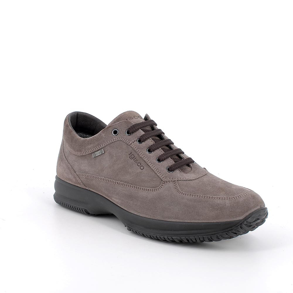 Man's gore-tex leather sneakers, dark mud