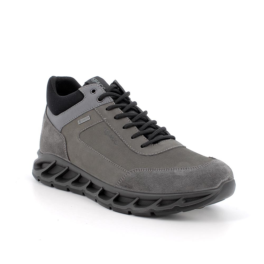 Waterproof and breathable lace-up sneakers with GORE-TEX lining. These sporty footwear have everything it takes to be considered a must for winter. Futuristic design of the sole made even lighter by the grooves along the entire profile. The removable memory foam insole is covered in leather and ensures cushioning while protecting the foot from stress.