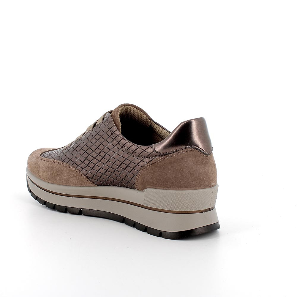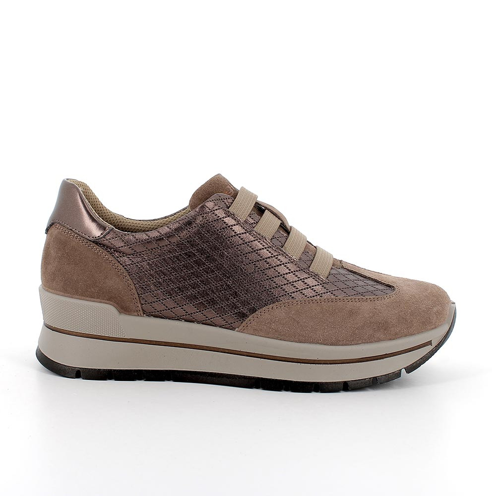 A printed leather with a perforated effect characterizes these mid-height wedge sneakers. Sober, but not banal, they are very comfortable and light. The elastic lacing makes them as practical as slip-ons. The leather insole is removable.
