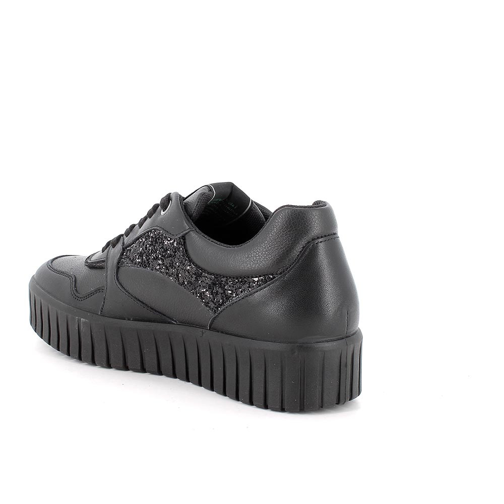 Woman's eco-friendly wedge leather sneakers, black