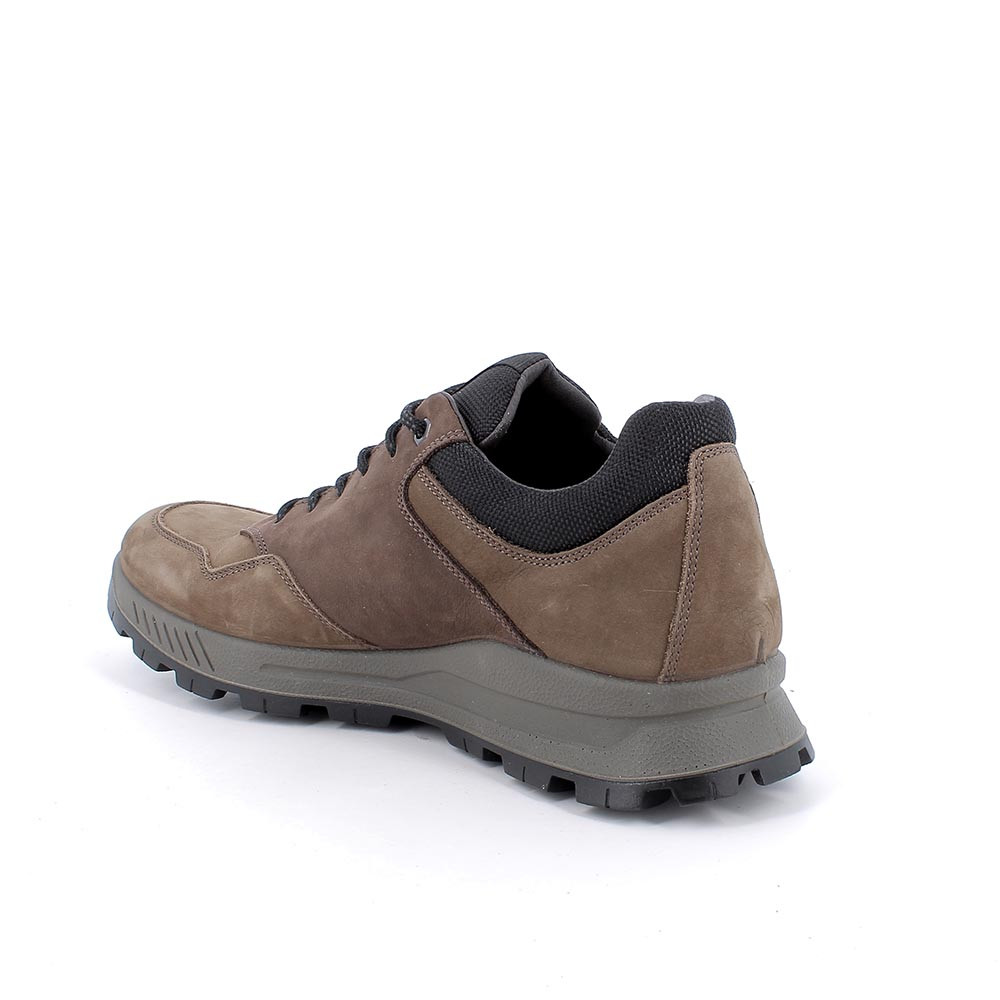 These sneakers made with fine leather and GORE-TEX technology are very detailed and lend themselves to combinations of all kinds. The rear raised collar is designed to obtain maximum protection even from a low shoe. The particular serration of the sole increases traction and favors flexibility. The removable memory foam insole is covered in leather and ensures cushioning while protecting the foot from stress.