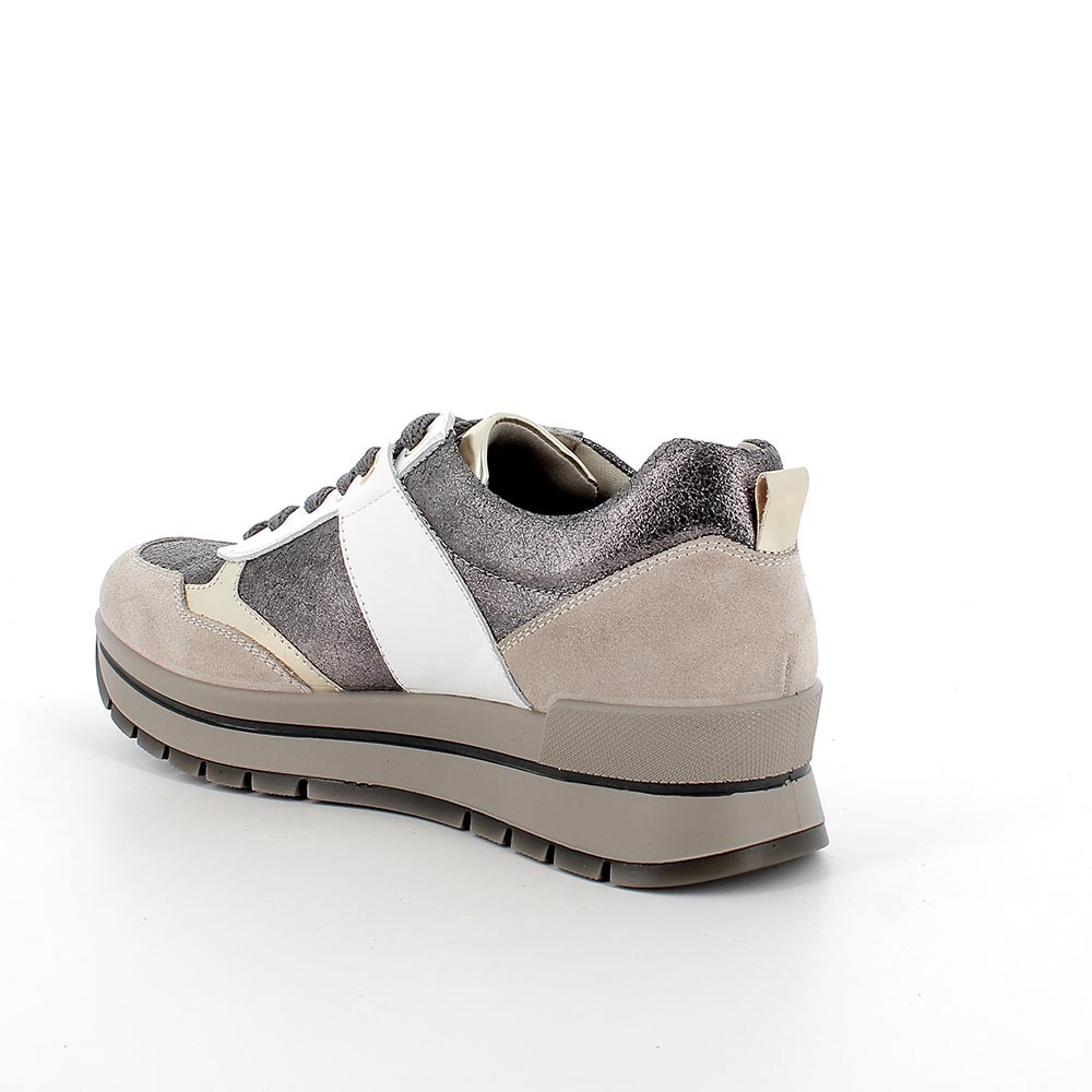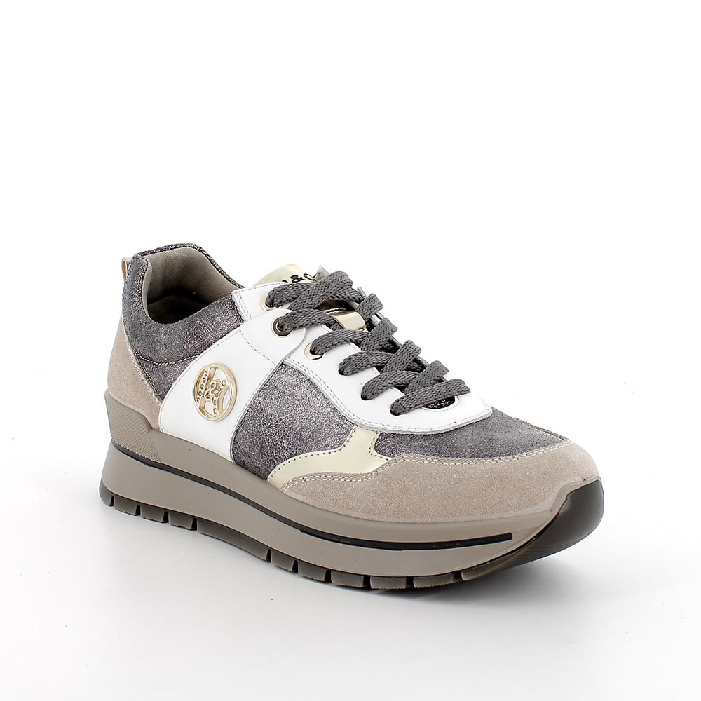 Sneakers for women silver and beige with laces